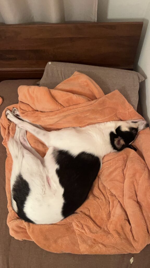 夜仕事して、ふと寝室をのぞいたらすごい形。