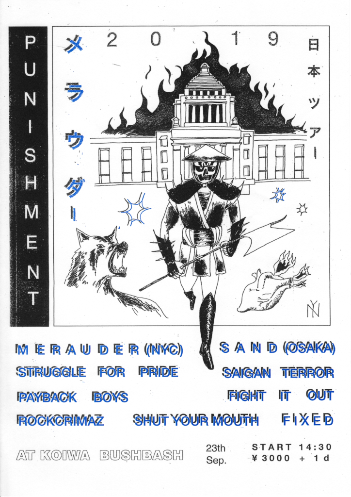 この間MERAUDERのJAPAN TOURの東京公演をROCKCRIMAZ、SHUT YOUR MOUTHと企画した時のフライヤー見てて、フライヤーのデザインから出演バンドまで全部凄まじすぎると思ったので見てみて。